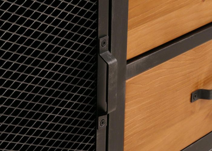Sideboard HWC-N28, 3D-Struktur Industrial Retro Metall Holz 90x150x40cm – schwarz, natur