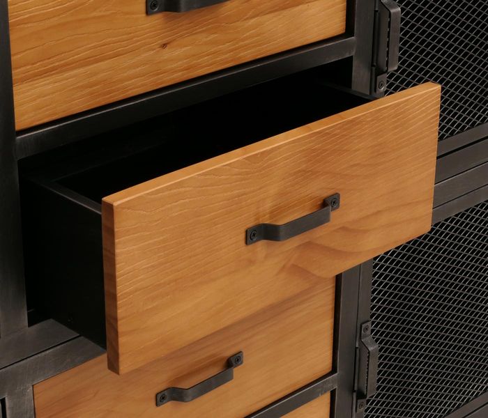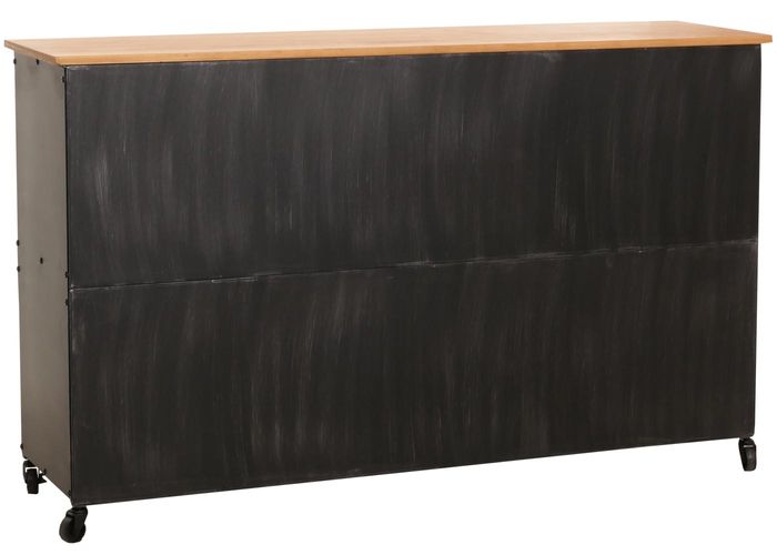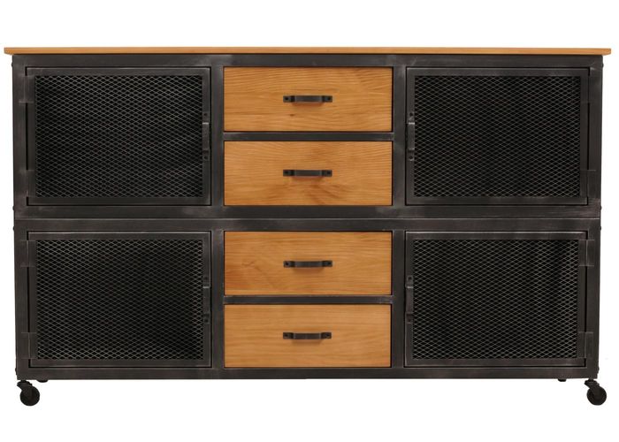 - Dieser Schrank beeindruckt mit vier grossen Fächern und vier Schubladen, die reichlich Stauraum für Ihre Bedürfnisse bieten. Dank der Rollen lässt sich die Kommode im Retro-Design mühelos verschieben, sodass Sie ihre Platzierung flexibel anpassen können.