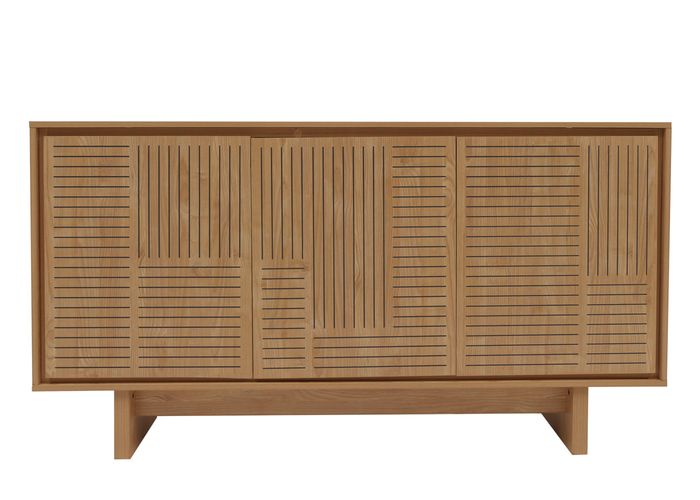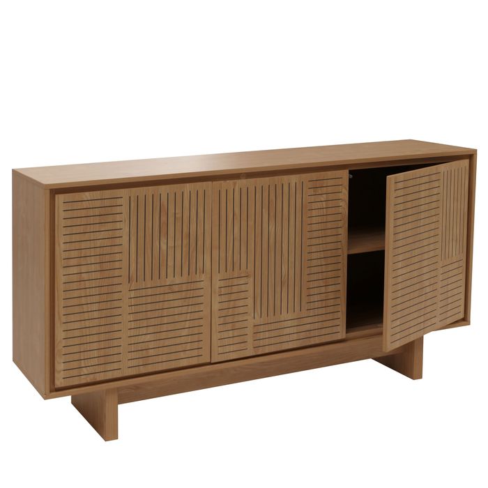 Die strukturierten Fronten verleihen dem Sideboard eine edle, haptische Tiefe und machen es zu einem echten Hingucker in jedem Raum. Dank integrierter Fussbodenschoner steht der Schrank sicher und schont gleichzeitig empfindliche Böden. Die robuste Tischplatte trägt dauerhaft bis zu 45 kg und eignet sich ideal zum Platzieren von Lampen, Pflanzen oder dekorativen Accessoires, während jedes einzelne Regalbrett mit bis zu 8 kg belastbar ist – so bleibt das Möbelstück auch bei voller Auslastung stabil und zuverlässig. Ob als stilvoller Stauraum im Wohnzimmer, als Geschirrschrank im Essbereich oder als praktisches Ordnungswunder im Flur – dieses Sideboard ist vielseitig einsetzbar und überzeugt mit einem zeitlosen Design, das sich harmonisch in verschiedene Einrichtungsstile einfügt. Ein Möbelstück, das nicht nur durch seine Optik, sondern auch durch seine Langlebigkeit begeistert.