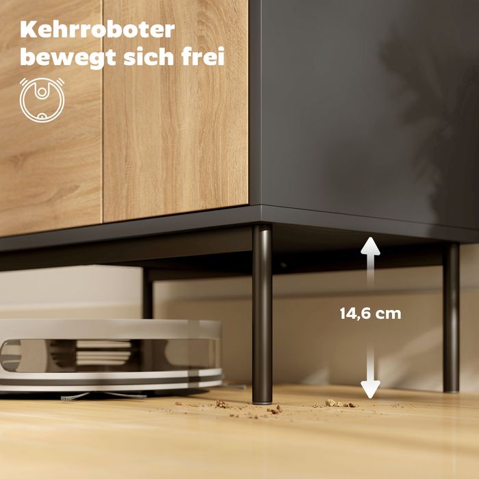 - Das erhöhte Basendesign ermöglicht eine mühelose Reinigung darunter mit Staubsauger oder Roboter