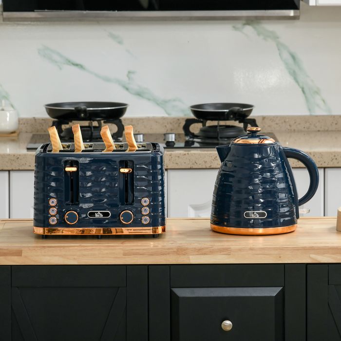 2-in-1 Toaster- und Wasserkocher-Set, 7 Bräunungsstufen, Auftau- und Aufwärmfunktion, Blau