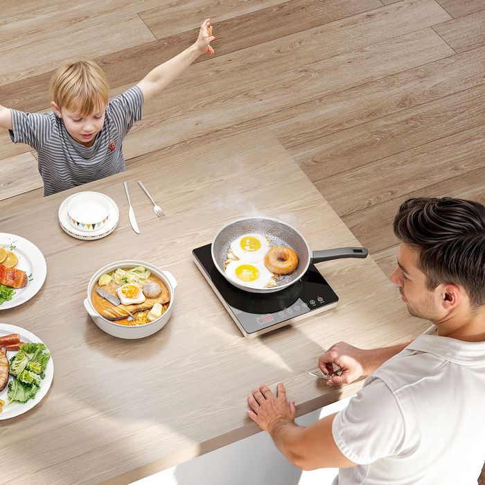 - Präzise Steuerung: Bietet 10 Temperaturstufen von 60°C bis 240°C und 10 Leistungsstufen, ergänzt durch einen Timer von 0 bis 180 Minuten für individuell angepasste Kochvorgänge. Das benutzerfreundliche Touchpanel mit LED-Anzeige erleichtert das Kochen.