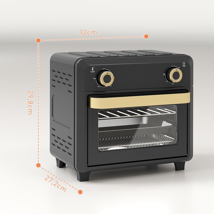 Minibackofen mit Umluft, Heissluftfritteuse, Timer, Innenbeleuchtung, 10L, Schwarz