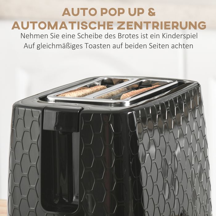 - ✔ Ihr Toast springt automatisch hoch, wenn er fertig ist, und die automatische Zentrierfunktion sorgt für gleichmässige Bräunungsergebnisse