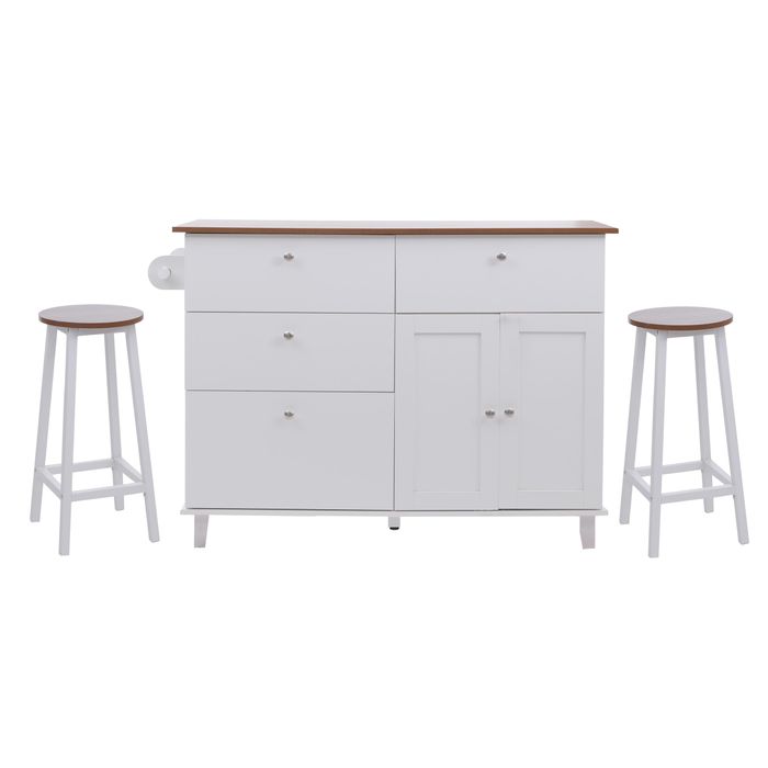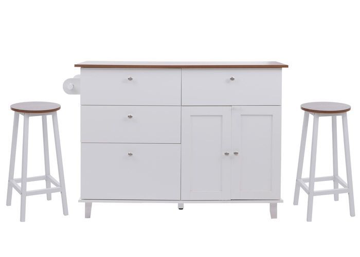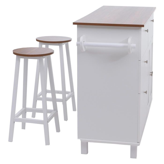 - Lieferumfang: Kücheninsel mit 2 Sitzhockern