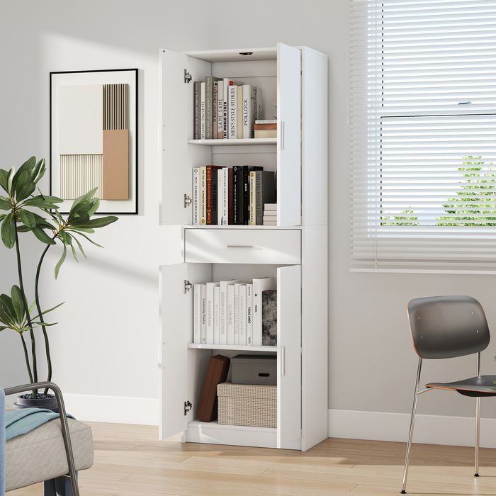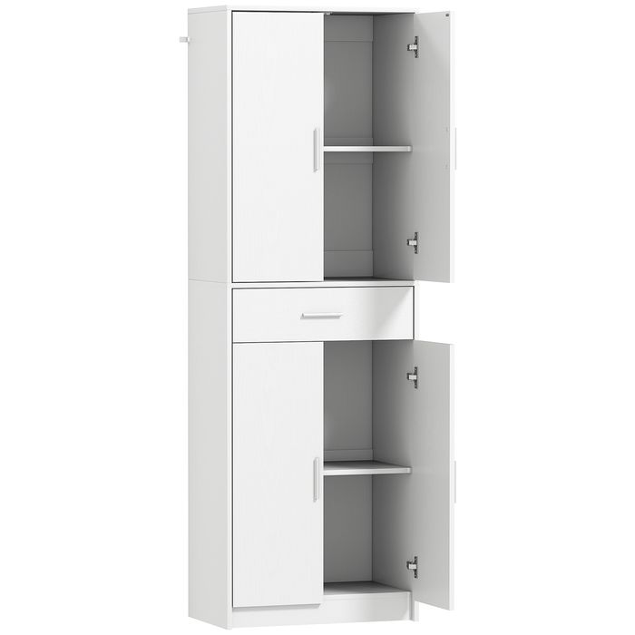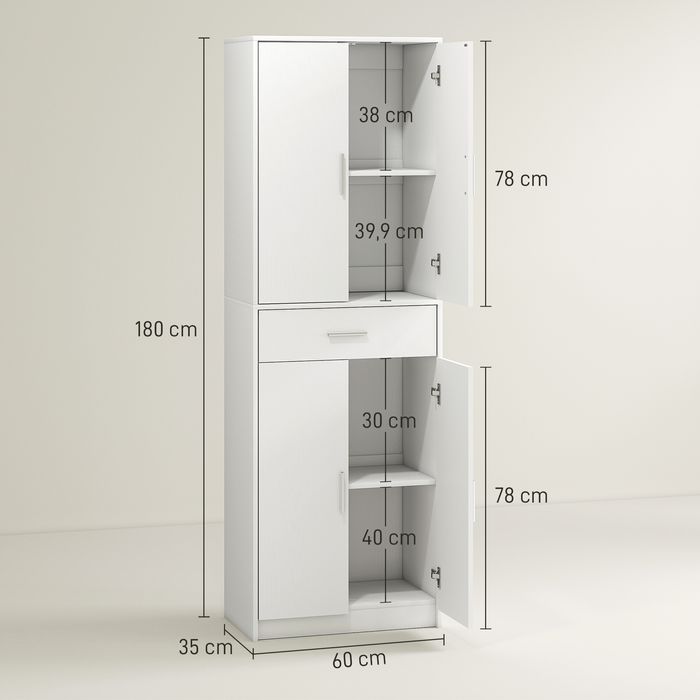 - Zeitgenössisches Design: In schlichtem Weiss gehalten und mit klaren Linien sowie silbernen Griffen versehen, harmoniert dieser Hochschrank perfekt mit jeder Raumgestaltung. Eine Bereicherung für Küchen, Speisebereiche, Wohnzimmer oder Büros.