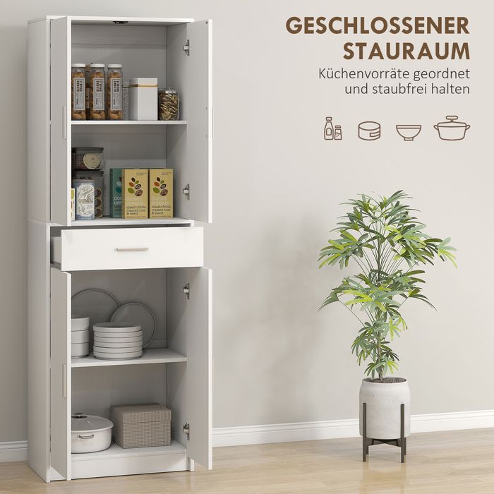 - Stabil und zuverlässig: Gefertigt aus qualitativer Spanplatte und MDF, bietet dieser Vorratsschrank Anti-Kipp-Kits und eine kratzfeste Melaminoberfläche für dauerhafte Stabilität und leichte Pflege.