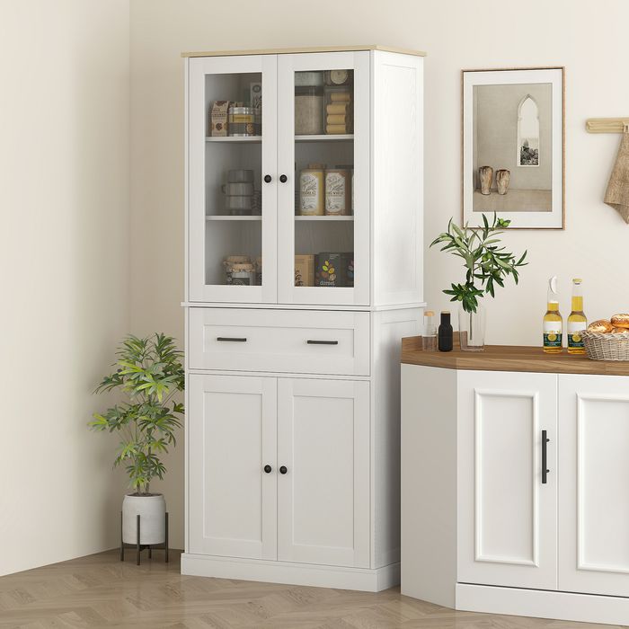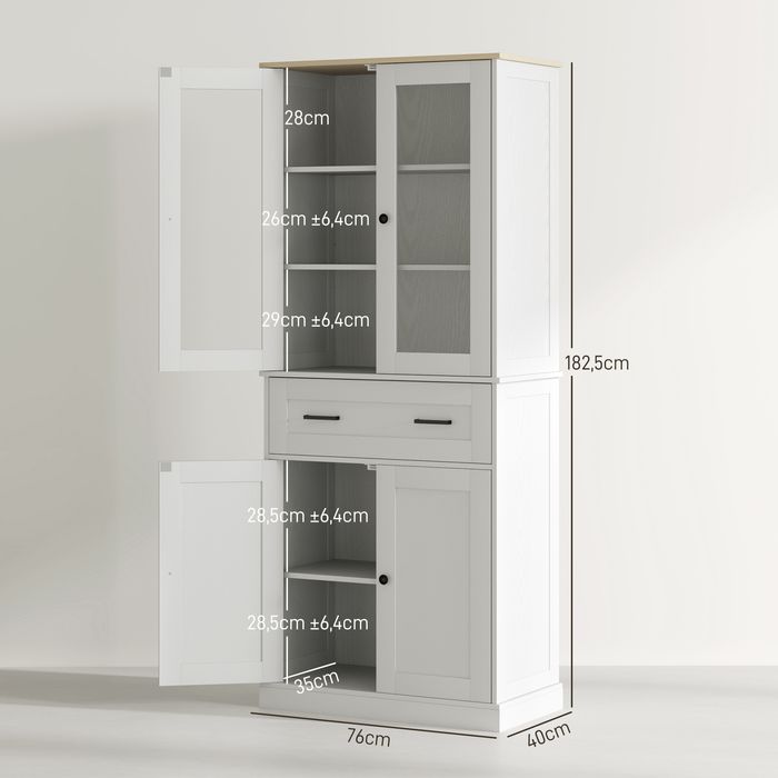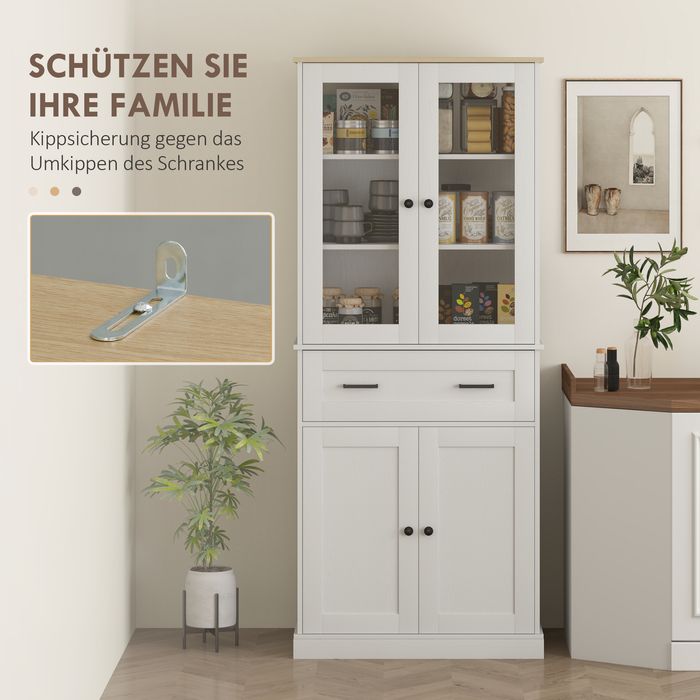 Sie lieben es, in der Küche zu stehen, aber Ihnen geht der Platz aus? Dieser HOMCOM Küchenschrank im Modernstil hilft Ihnen, Ihre Küche im Handumdrehen aufzuräumen. Sie müssen nicht mehr alle Töpfe und Pfannen übereinander stapeln, um an den einen Suppentopf im hinteren Teil zu gelangen. Dieser Vorratsschrank gibt Ihnen den nötigen Platz, damit alles seinen Platz findet. Mit diesem Vitrinenschrank von HOMCOM haben Sie mehr Zeit zum Kochen und Geniessen.
