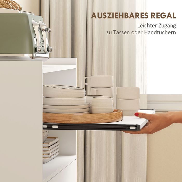 - Das ausziehbare Regal ermöglicht einen leichten Zugriff auf Tassen oder Handtücher