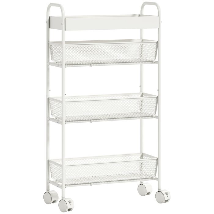 - Drei Körbe und ein Tablett: Mit drei herausziehbaren Metallgitterkörben und einem oberen Ablagefach ausgestattet, verstaut dieser Servierwagen Obst und Gemüse optimal belüftet und frei von unangenehmen Gerüchen