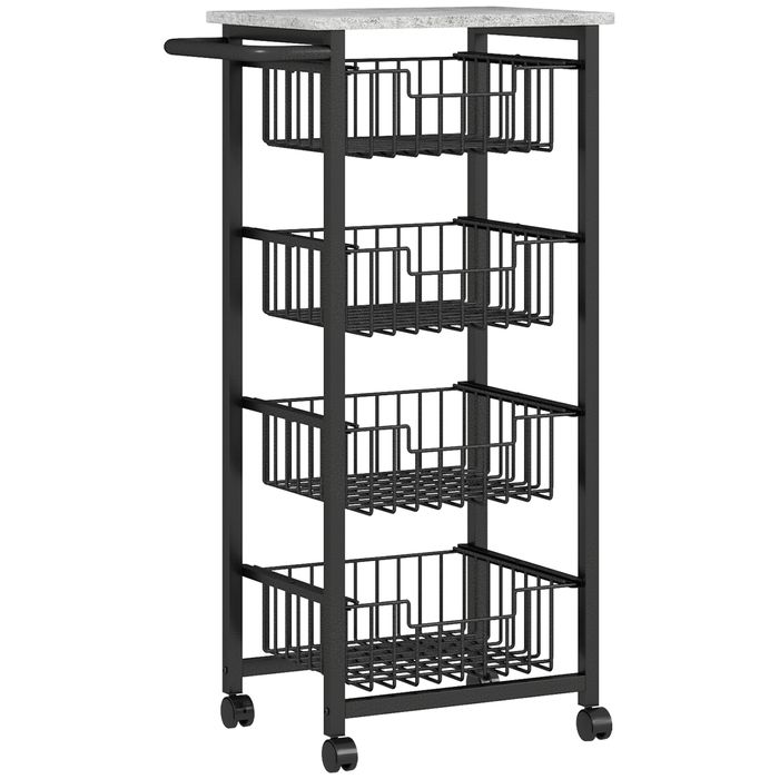 - Praktische Aufbewahrung: Dieser Küchenwagen auf Rollen verfügt über vier herausziehbare Körbe, perfekt für die übersichtliche Lagerung von Gemüse, Obst, Snacks und Gewürzgläsern