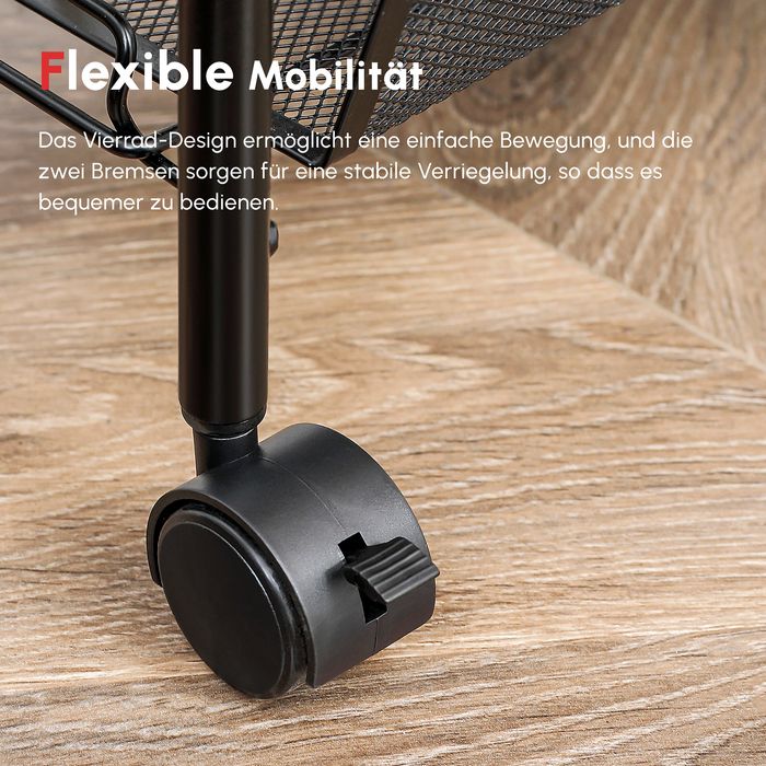 - ✔ 4 leichtgängige Rollen sorgen für Mobilität, zwei davon sind feststellbar