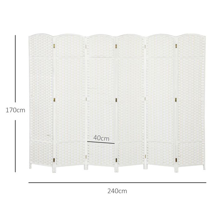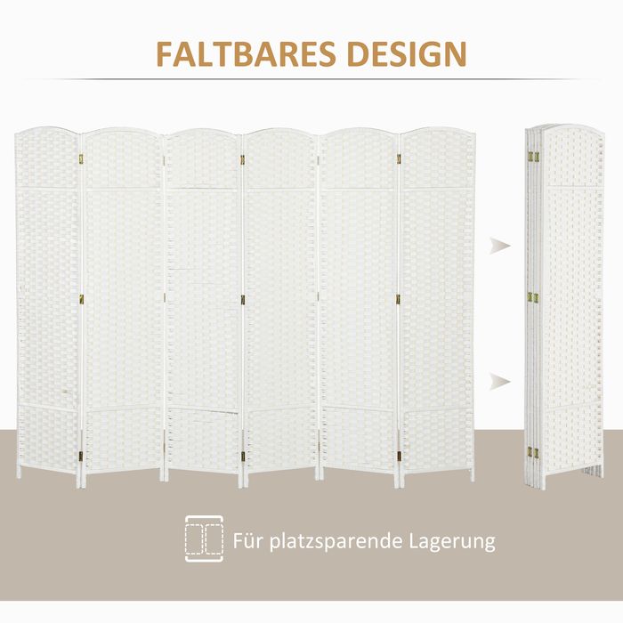 6-teiliger Raumtrenner, Faltbarer Sichtschutz, Sichtschutzwand für Wohnzimmer, Schlafzimmer, Homeoffice, Weiss