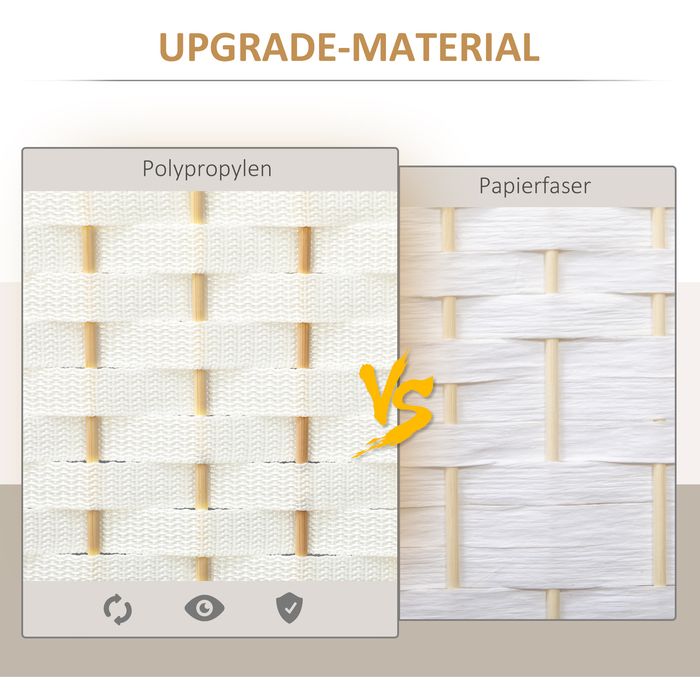 - Hochwertiges Material: Der Raumtrenner besteht aus einem stabilen Kiefernholzrahmen und einem Polypropylen-Gewebe, das traditionelle Papierfaserplatten in Sachen Privatsphäre und Langlebigkeit deutlich übertrifft
