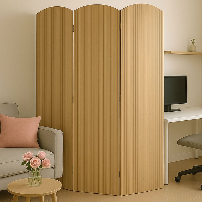 Der stilvolle Paravent mit drei Paneelen aus hochwertigem Bambus vereint natürliche Eleganz mit praktischer Funktionalität und bringt ein warmes, harmonisches Wohngefühl in jeden Raum. Ob als dekorativer Raumteiler, flexibler Sichtschutz oder als ästhetisches Highlight - dieser Paravent setzt gezielte Akzente und schafft zugleich Privatsphäre, ohne dabei erdrückend zu wirken. Die feine Bambusstruktur verleiht dem Raum eine ruhige, organische Atmosphäre und sorgt durch das durchlässige Design für eine angenehme Lichtverteilung. Besonders in kleinen Wohnbereichen erweist sich der Paravent als intelligenter Helfer, denn er trennt Wohnzonen klar voneinander ab und lässt den Raum dabei optisch grösser wirken - ideal für Studio-Apartments, Schlafbereiche, Büros oder Home-Office-Lösungen. Dank der klappbaren Konstruktion lässt sich der Paravent bei Bedarf platzsparend zusammenfalten und schnell verstauen, ohne auf Stil verzichten zu müssen. Die vier beweglich verbundenen Elemente ermöglichen maximale Flexibilität in der Positionierung – gerade, gewinkelt oder leicht gebogen. Ein weiterer Vorteil: Der Paravent wird komplett fertig montiert geliefert, sodass kein zeitaufwendiger Aufbau nötig ist. Einfach ausklappen und sofort nutzen. Dieses funktionale Designobjekt überzeugt durch seine hochwertige Verarbeitung, die Langlebigkeit des Materials und seine vielseitigen Einsatzmöglichkeiten - ob im Schlafzimmer, Wohnzimmer, Büro oder auch in gewerblichen Räumen wie Praxen oder Studios. Der Bambus-Paravent ist die perfekte Kombination aus Natürlichkeit, Komfort und Stil und eine kluge Wahl für alle, die Räume neu denken möchten, ohne bauliche Veränderungen vorzunehmen.