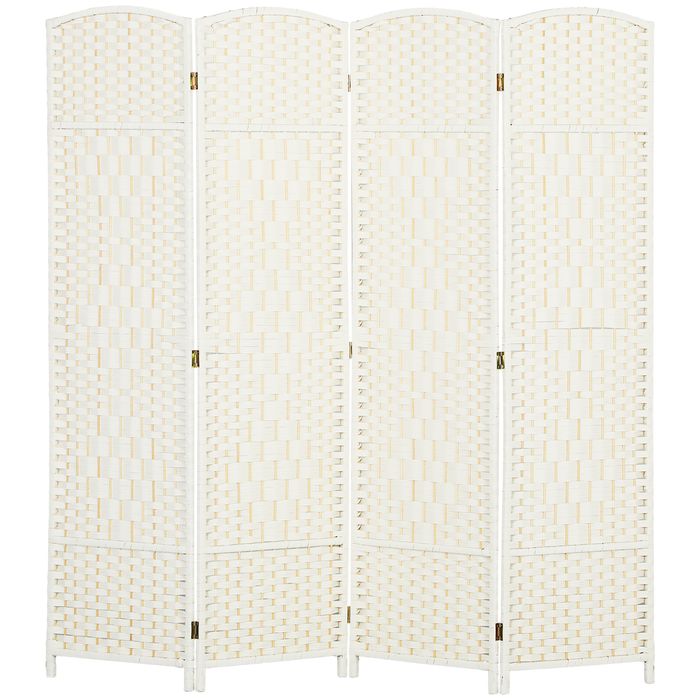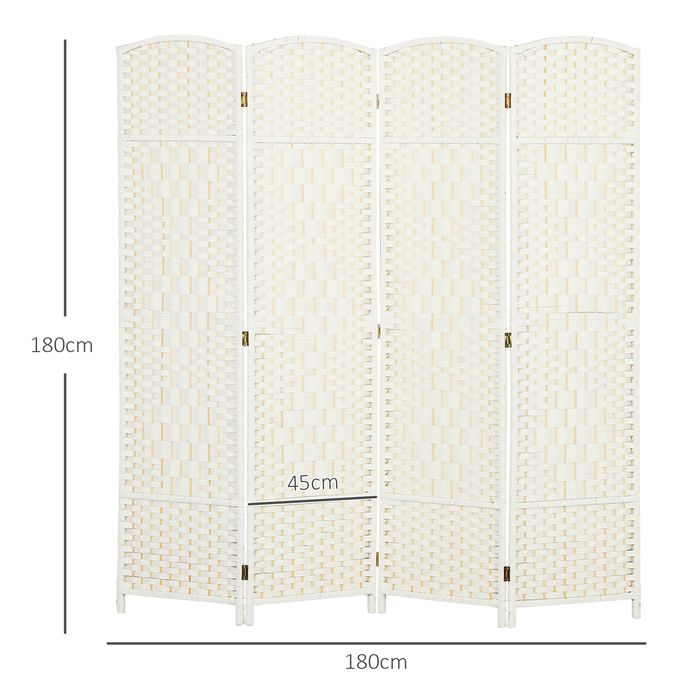 Verwandeln Sie Ihren Raum mit dem HOMCOM Raumteiler. Die Polypropylenstruktur bietet maximale Privatsphäre und ist robuster als herkömmliche Papierfasern. Diese mobile Trennwand kombiniert Funktionalität und Stil in einem vierflügeligen Falt-Design mit neun Metallscharnieren. Ein eleganter Bogenrahmen aus Kiefernholz und das Polypropylengeflecht machen den HOMCOM Faltbildschirm zu einer modischen Privatsphären-Lösung.