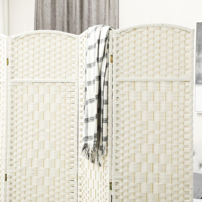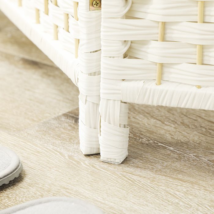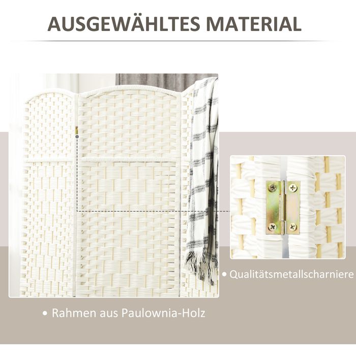 Raumteiler, 4-teilig faltbare Trennwand, Geflechtmuster, Kiefernholz, Weiss