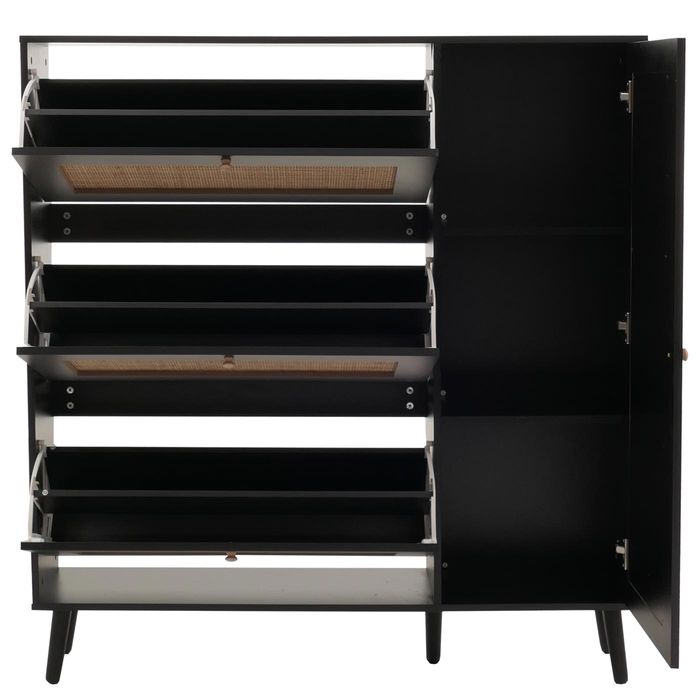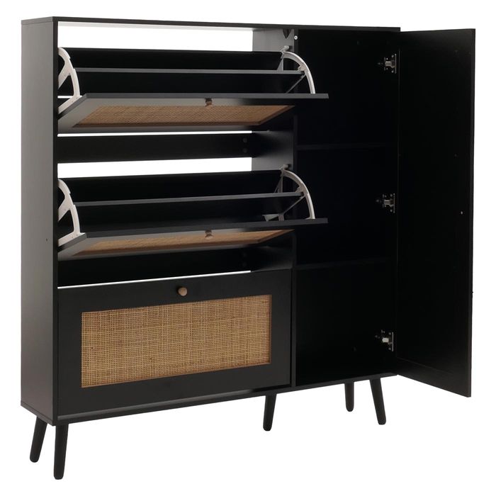 - Dieser Schuhkipper mit handgefertigtem natürlichen Kubu Rattan glänzt durch sein schlichtes, elegantes Design. Mit diesem praktischen Schuhschrank mit drei Kippfächern für 18–36 Paar Schuhe organisieren Sie Ihre Schuhe stilvoll und platzsparend.