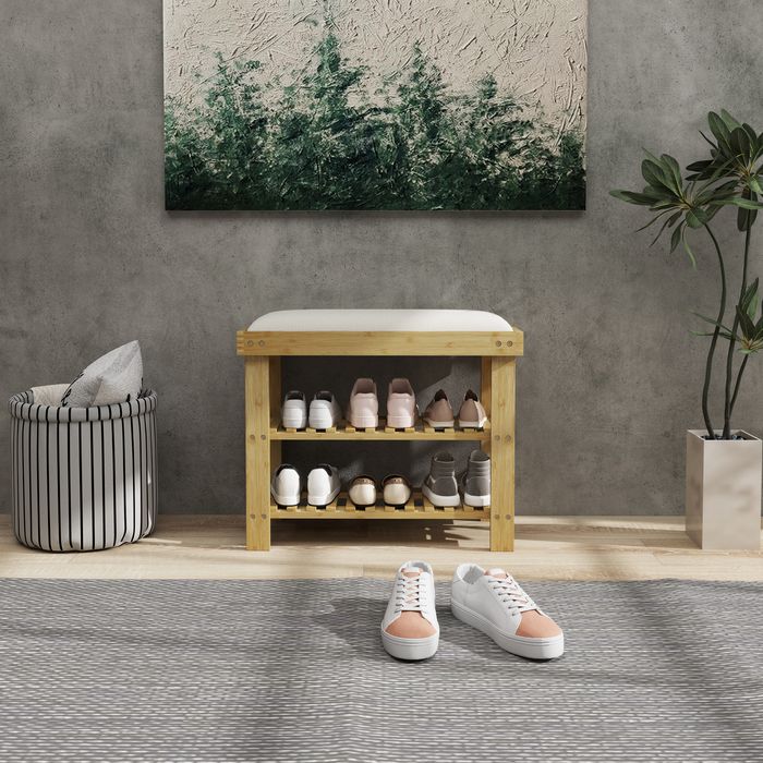 - Natürliches Material und stabil: Hergestellt aus robustem Bambus mit einer glatten Lackierung, kombiniert dieses Schuhregal für den Eingangsbereich Langlebigkeit mit einer Tragfähigkeit von bis zu 150 kg.