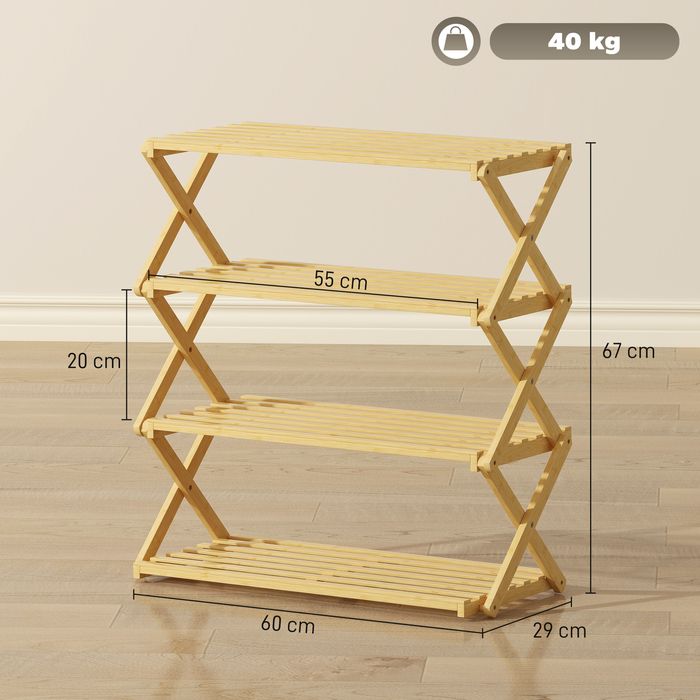 Schuhregal, 4 Ebenen, Bambus, bis 12 Paar Schuhe, 60x29x67cm, Natur