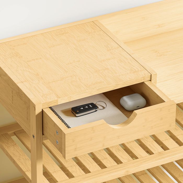 Gestalten Sie Ihren Eingangsbereich neu mit dem HOMCOM Schuhregal! Dieses elegante Design mit 6 Ebenen, inklusive Schublade und ausgedehnter Arbeitsfläche, stellt bis zu 18 Paar Schuhe übersichtlich unter. Gefertigt aus nachhaltigem Bambus, sorgt es für Stabilität, während die geschlitzten Regale die Luftzirkulation unterstützen und Gerüche minimieren. Dank der versiegelten Oberfläche ist auch die Reinigung kinderleicht. Hier beginnt ein aufgeräumtes Zuhause!
