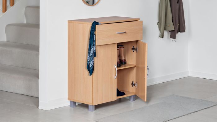 Schuhschrank Buche Optik 60 cm Schuhkommode mit Schublade und 2 Türen