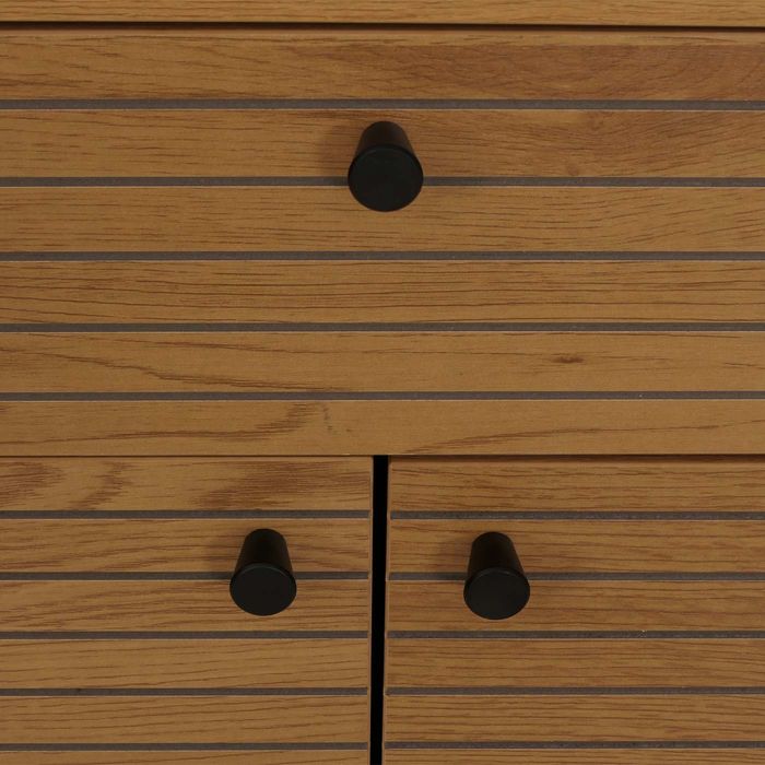 Schuhschrank HWC-N78, skandinavischer Stil Metall Holz Melamin MVG 115x80x35cm – natur