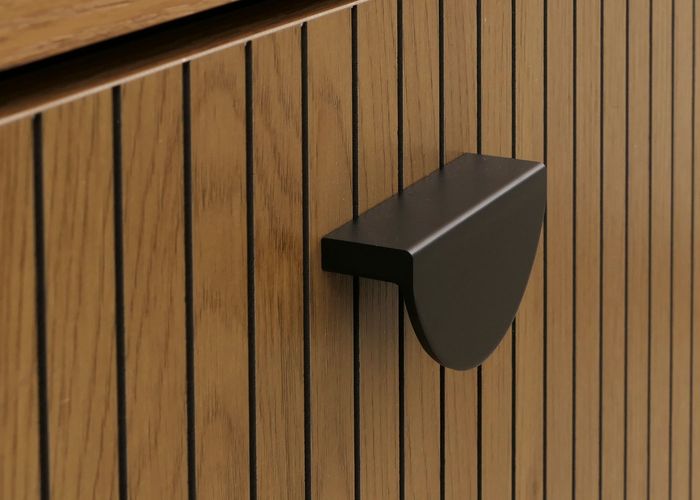 - Klappfächerfronten im Lamellen-Design, mit modernen Griffen