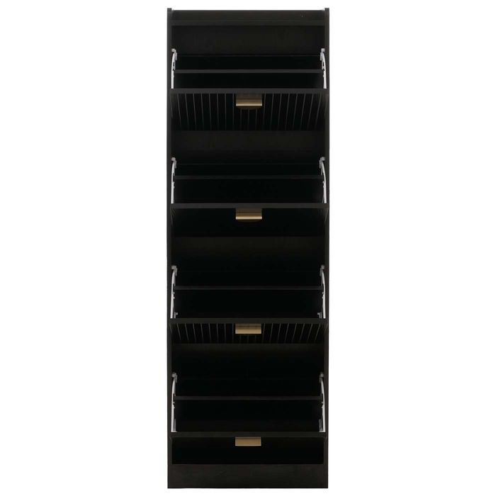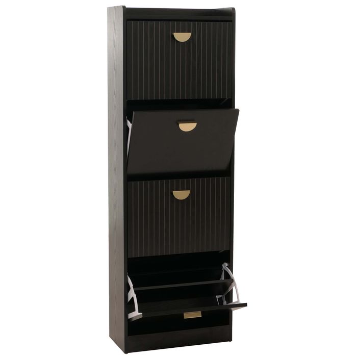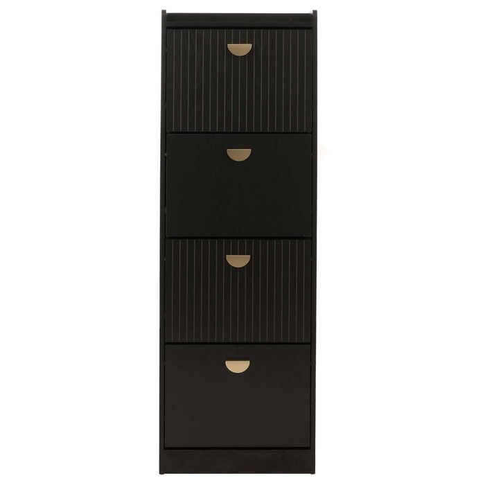 Schuhschrank HWC-O39, 4 Klappen MDF Melamin Metall 148x50x24cm – Holzoptik schwarz