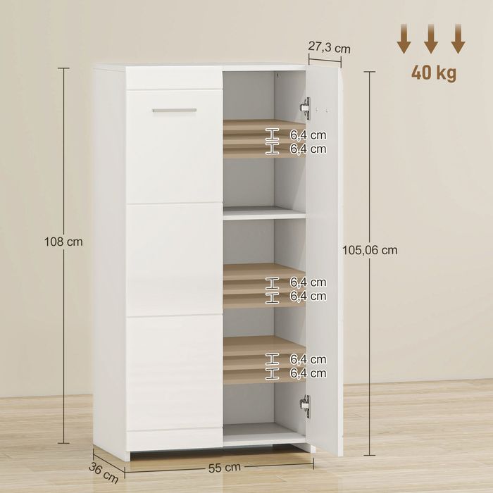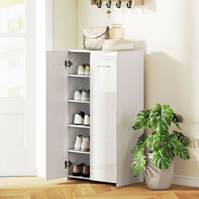 - Elegante Ergänzung für jeden Raum: Die minimalistische Silhouette und hochglänzenden Paneele machen diesen Schuhschrank zur stilvollen, funktionalen Aufbewahrung für Eingangsbereiche, Schlafzimmer, Wohnzimmer oder Heimbüros.