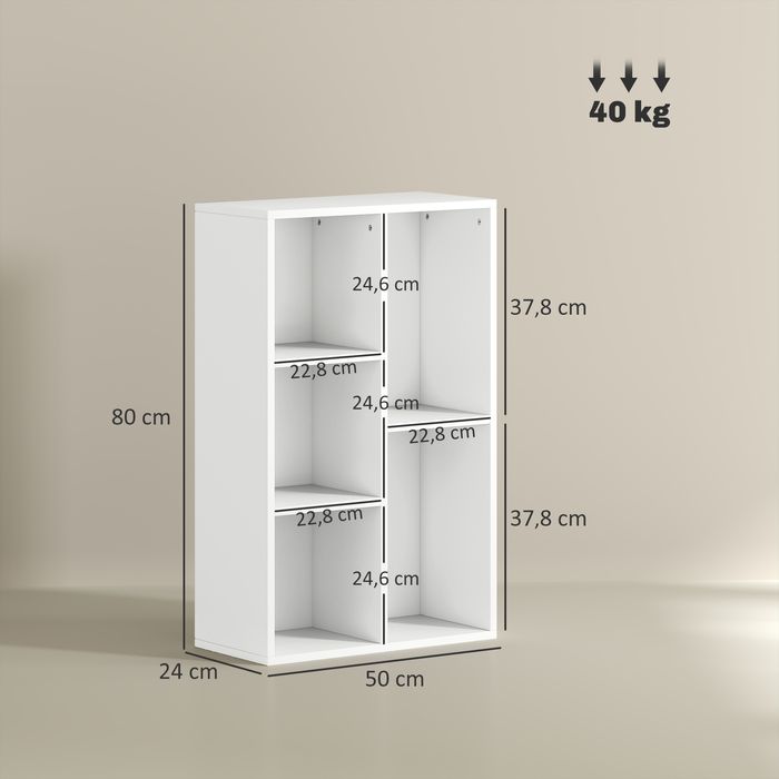 2-Ebenen-Bücherregal, 5 Fächer, Spanplatte, Aufbewahrungsregal, Weiss
