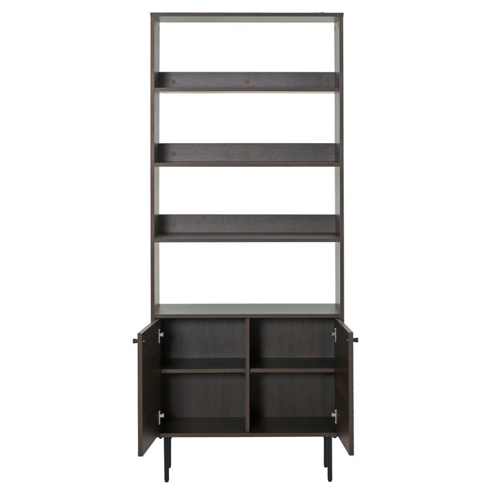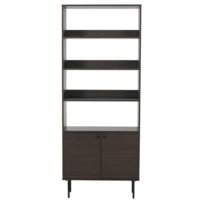 - Das Bücherregal N78 überzeugt mit kratzfester, wasserbeständiger Melamin-Beschichtung, höhenverstellbaren Fussbodenschonern und einer eleganten Türoberfläche im skandinavischen Stil mit dekorativem Griff. Es bietet eine langlebige, stabile und pflegeleichte Lösung für jeden Raum.
