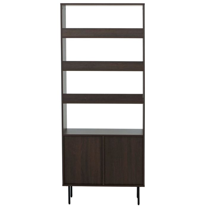 Bücherregal HWC-N78, skandinavischer Stil Metall Holz Melamin MVG 200x80x30cm – dunkelbraun