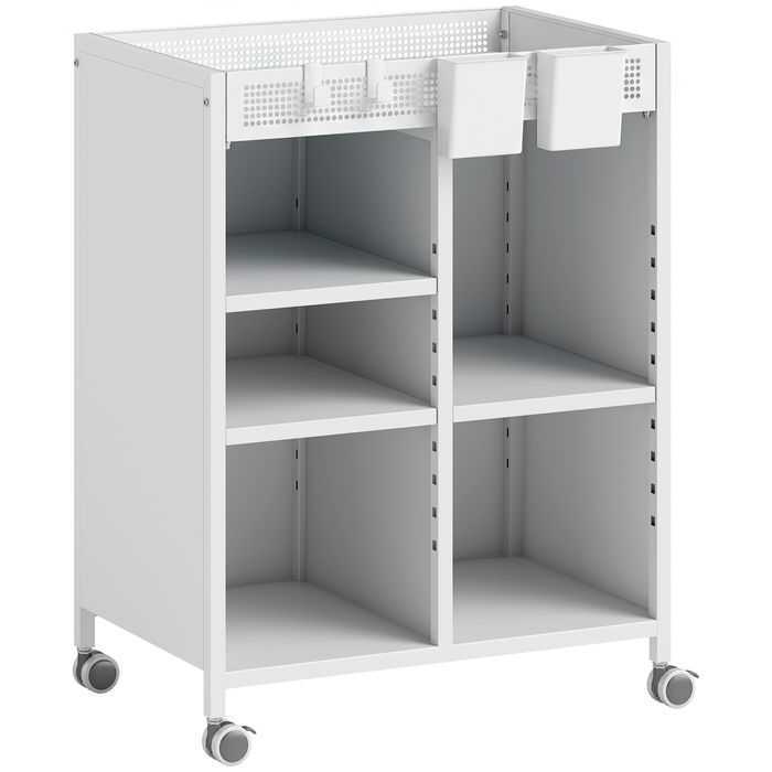 - Mobiler Stauraum nach Bedarf: Dieses Bücherregal auf 360°-Rollen ermöglicht flexiblen Materialtransport zwischen Räumen. Zwei Feststellbremsen halten es sicher und stabil an Ort und Stelle.