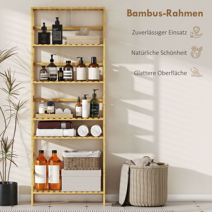 Regal, 6 Ebenen, Bambus, verstellbar, Naturholz