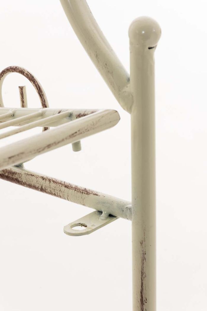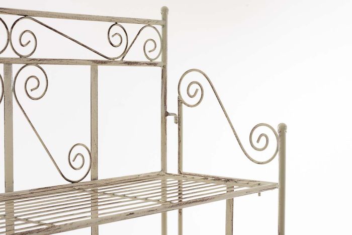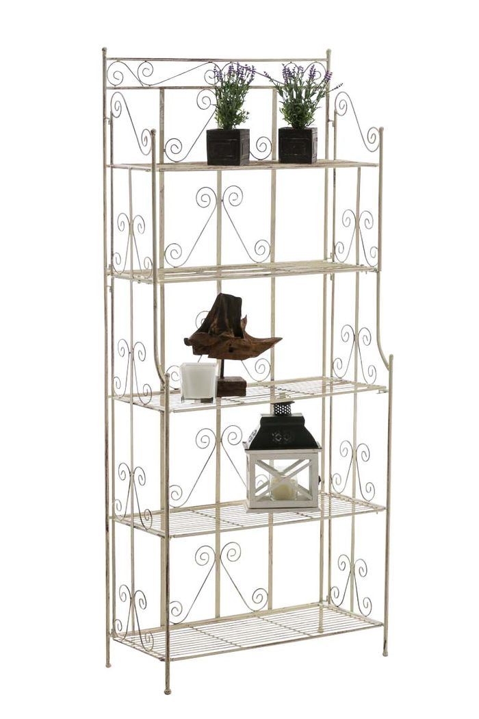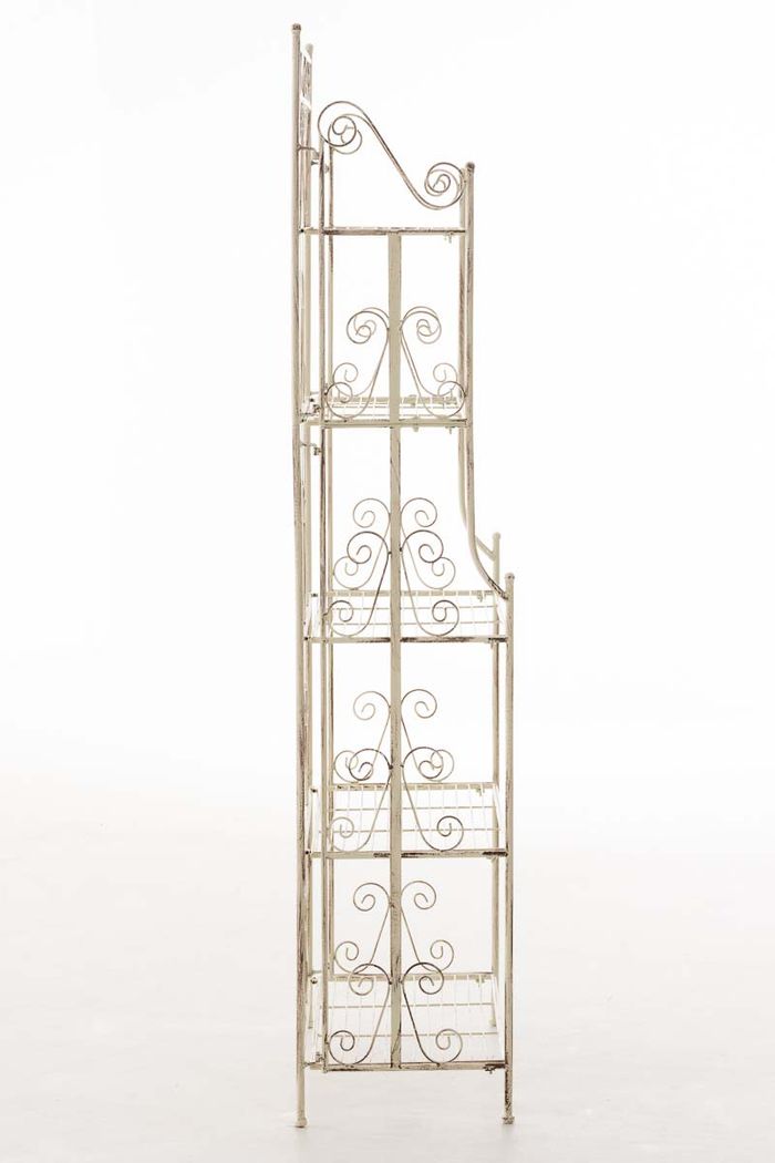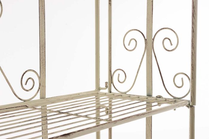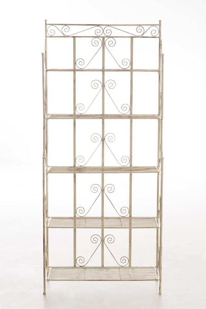 Eine Beschichtung (pulverbeschichtetes Eisen) macht dieses Klappregal sehr hochwertig und extrem langlebig. Die liebevollen Verzierungen im Landhausstil sehen sehr schön aus und verleihen einen antiken Charakter. Das Regal kann bei Bedarf zusammengeklappt werden!