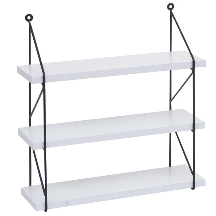 - Dieses dekorative Regal verfügt über drei Regalböden, die ausreichend Platz für Ihre persönlichen Gegenstände bieten. Mit diesem Wandregal können Sie nicht nur Ihren Raum organisieren, sondern auch einen modernen Akzent setzen.