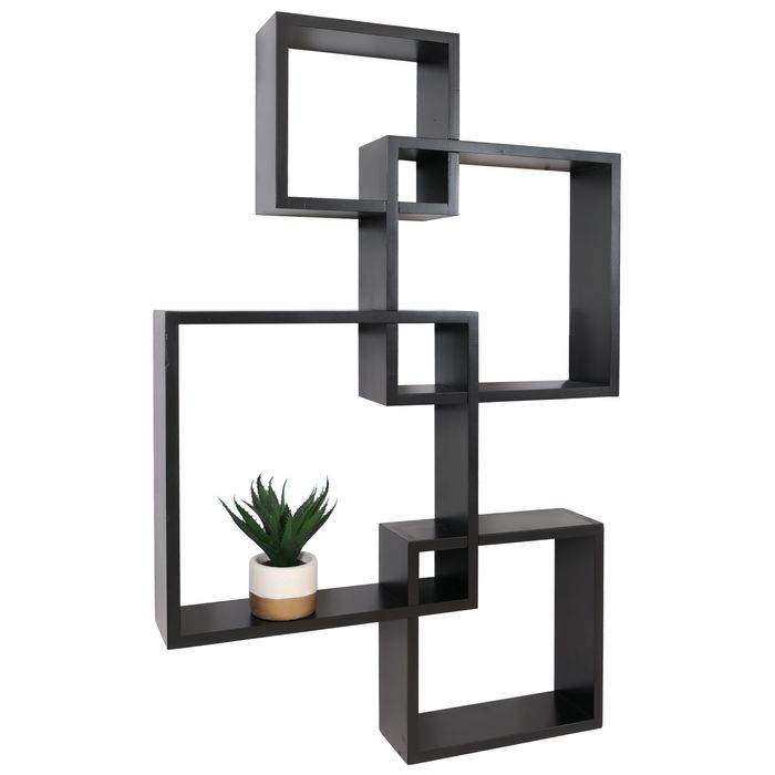 - Das Wandregal überzeugt durch sein geometrisches Design mit ineinander verschachtelten Würfeln. Es kombiniert natürliche Wärme mit moderner Formgebung und fügt sich harmonisch in jede Einrichtung ein - ob im Wohnzimmer, Büro, Flur oder Schlafzimmer.