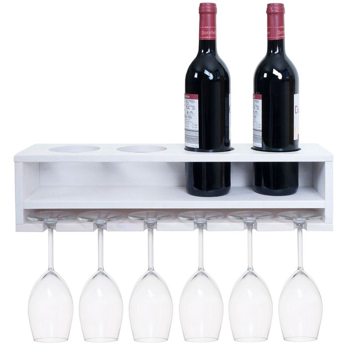 Die hochwertige Verarbeitung sorgt für Stabilität und Langlebigkeit, sodass Sie lange Freude an diesem Möbelstück haben werden. Dank der einfachen Montage lässt sich die Bar schnell und unkompliziert anbringen. Präsentieren Sie Ihre Weinsammlung mit Stil und bringen Sie ein Stück wohnliche Eleganz in Ihr Zuhause. Dieses Wandregal ist nicht nur ein praktisches Möbelstück, sondern auch ein dekoratives Highlight, das Ihren Wohnraum aufwertet und Ihre Weinliebe perfekt in Szene setzt.