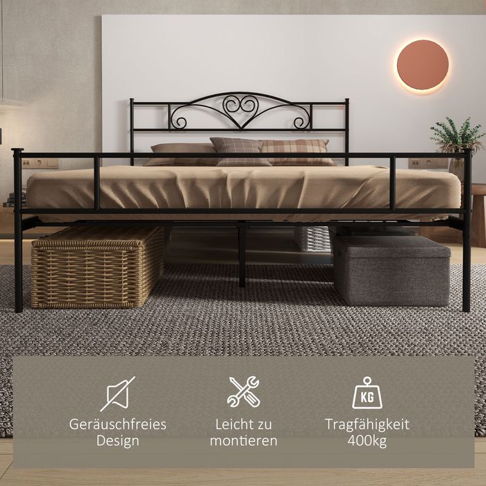 - Stahlstruktur: Robuste Bauweise - das King-Size-Bettgestell unterstützt Sie optimal beim Schlafen und Entspannen. Integrierte Latten sorgen für den Halt der Matratze.
