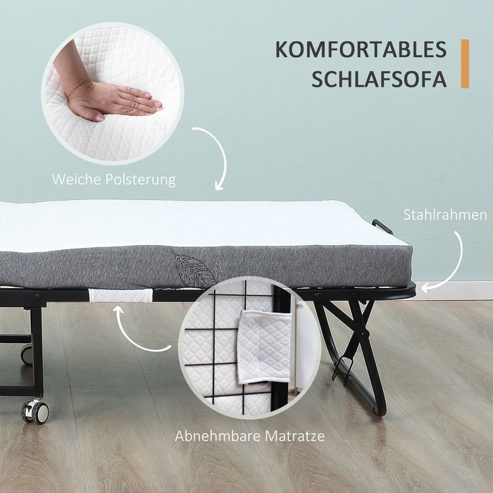 Sind Sie besorgt, dass keine Betten für unerwartete Gäste verfügbar sind? Dieses praktische und bequeme Klappbett von wird Sie bestens für Übernachtungsbesuche rüsten und Ihren Gästen einen hochkomfortablen Schlafplatz bieten. Das Schlafbett lässt sich schnell aufklappen und mühelos dank vier leichtgängiger Rollen bewegen. Bei Nichtgebrauch können Sie es zusammenklappen und platzsparend verstauen. Die weiche Matratze sorgt für ein komfortables Liegegefühl und einen erholsamen Schlaf.