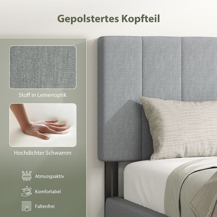 Kopfteil 3-fach höhenverstellbar, Metallbeine, Leinenoptik 160x10x106/116/126cm Grau