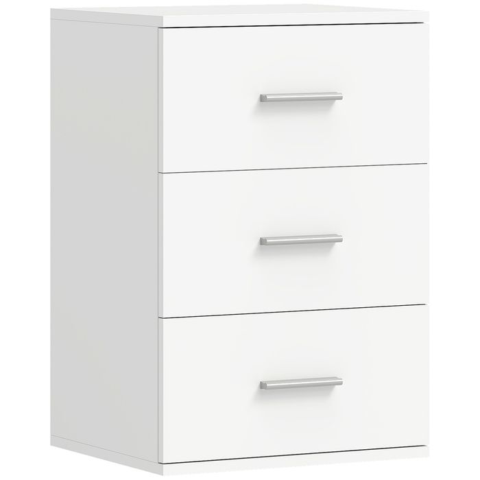 Nachttisch, 3 Schubladen, MDF, Weiss