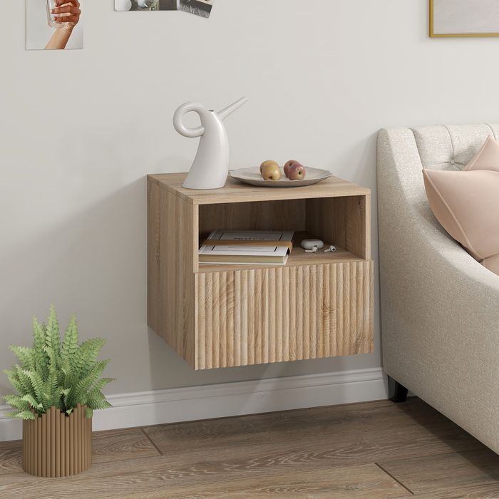 Nachttisch, griffloses Design, offenes Fach, Schublade, Wandmontage, Hellbraun