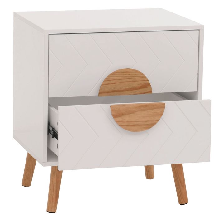 Nachttisch HWC-N89, Kommode Beistelltisch Nachtschrank, Schublade Fischgrätenmuster Melamin Holz, 55x48x40cm - weiss
