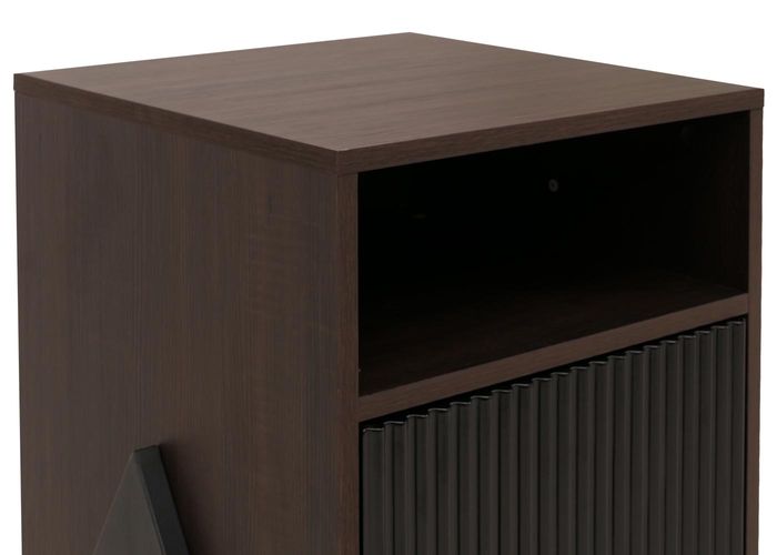 Der Nachttisch O40 vereint modernes Design mit praktischer Funktionalität und wird so zum stilvollen Highlight in jedem Schlafzimmer. Mit seiner hochwertigen Oberfläche aus Melamin ist er besonders kratzfest und wasserabweisend, wodurch er auch nach Jahren der Nutzung seine edle Optik behält. Die grosszügige Ausstattung mit einem offenen Ablagefach und einer geräumigen Schublade bietet ausreichend Platz, um Bücher, persönliche Gegenstände oder elektronische Geräte ordentlich und griffbereit zu verstauen. Die strukturierte Front der Schublade setzt einen besonderen Akzent und verleiht dem Nachtschrank eine elegante Note.