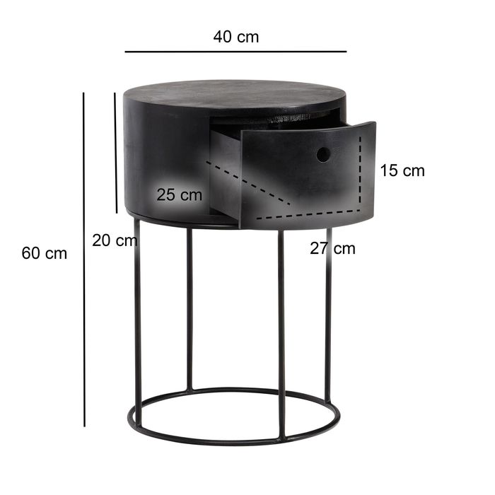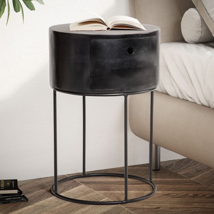 Nachttisch Nachtkonsole Boxspringbett Holz 60 cm Schwarz Schublade Rund