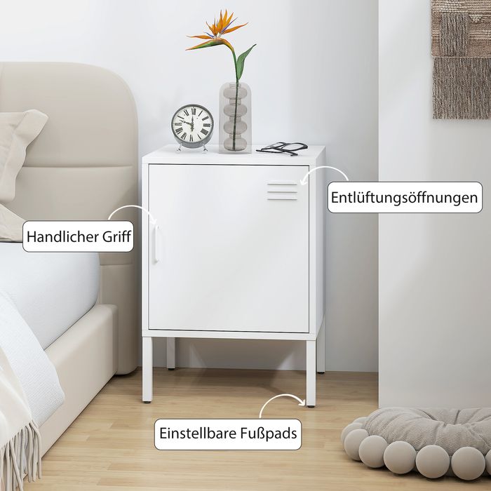 - Starkes Stahlgestell des Nachtschranks trägt bis zu 50 kg und verstellbare Fusspolster sorgen für Stabilität