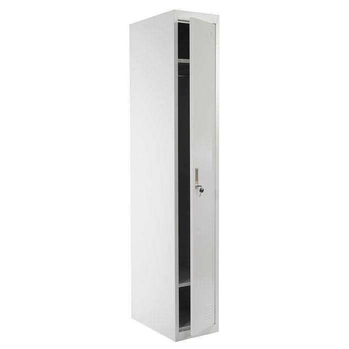 Geliefert wird dieser Artikel zerlegt, jedoch ist der Zusammenbau, aufgrund des durchdachten Stecksystems, denkbar einfach und schnell durchzuführen. Die im Lieferumfang enthaltenen Einlegeböden und die Kleiderbügelstange unterteilen Ihren neuen Spind zweckmässig. Das Drehriegelschloss, sowie die einschlagenden Türen, sorgen für höchstmögliche Sicherheit, die Langfingern kaum eine Chance lässt. Bei diesen Schliessfächern gibt es 1000 verschiedene Kodierungen, sodass bei einem Kauf von einer grösseren Menge garantiert ist, dass die Schlösser alle unterschiedlich sind.