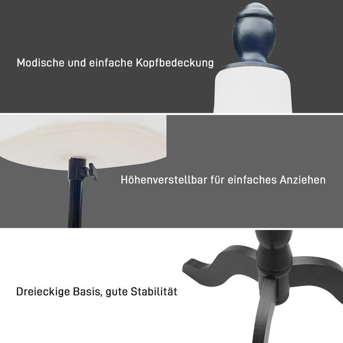 - Dreibeinbasis: Der Mannequinständer aus robustem Kiefernholz hat ein stabiles Dreibein-Design, ist leicht und einfach zu transportieren.